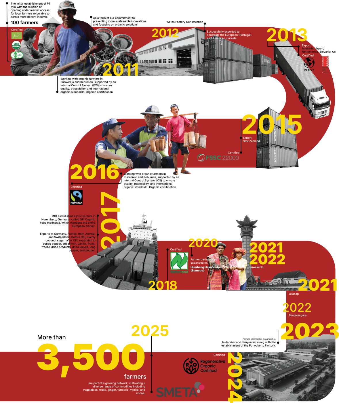 Our journey began with PT Mega Inovasi Organik (MIO), a holding company that has grown in connecting smallholder farmers with international markets through fair and traceable practices.